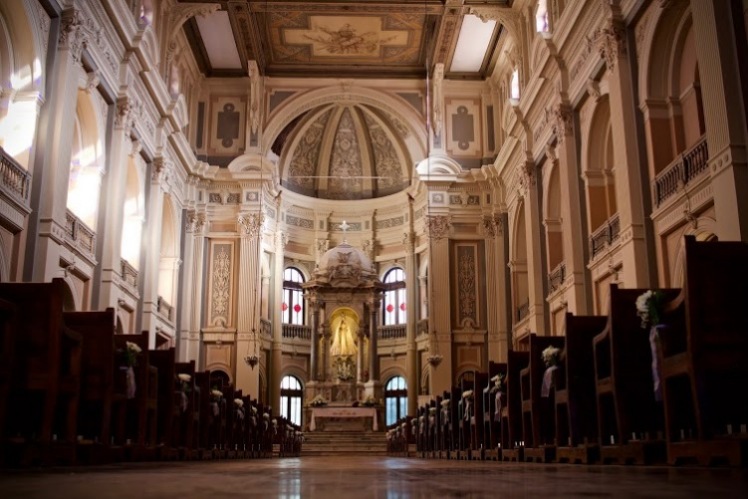 El presbítero y al magnifico altar están esculpido en mármol de Carrara.